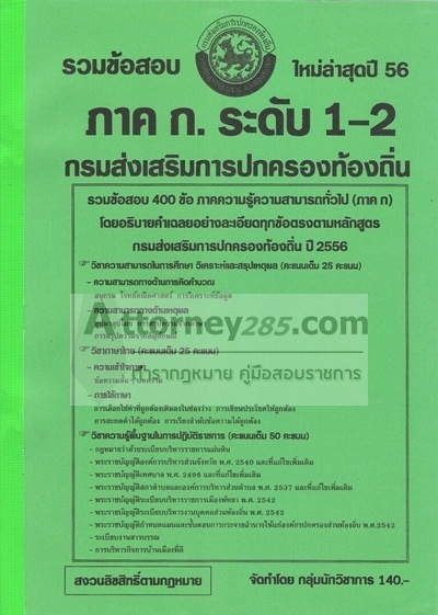รวมข้อสอบ ภาค ก. กรมส่งเสริมการปกครองท้องถิ่น ระดับ 1-2 ใหม่ล่าสุดปี 56