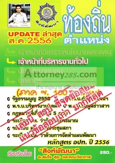 คู่มือ แนวข้อสอบ เจ้าหน้าที่บริหารงานทั่วไป ท้องถิ่น (ภาค ข 100 คะแนน) ล่าสุด 2556 สิงห์พัฒนา สมใจ สุระ