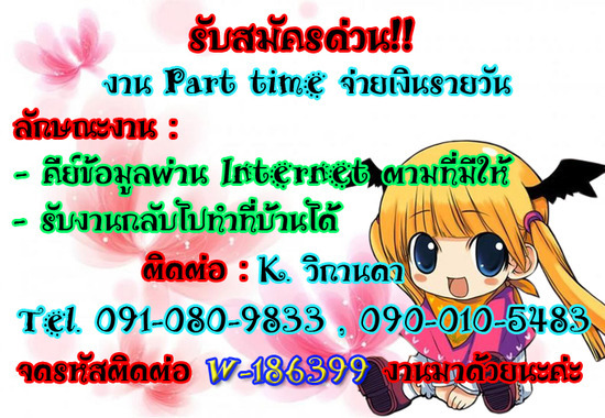 งานเสริมทำชั่วคราว ผ่านเน็ต #รายได้ดี คีย์ข้อมูล ทำงานที่บ้าน รับด่วน ติดต่อทันที !