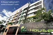 Asoke for rent K-House Sukhumvit 71 Nice Apartment style Condo close to Asoke @Sukhumvit 21 near BTS Phra khanong station Soi Pridi Banomyong 14 Yaek 4 Tel.088-5245959