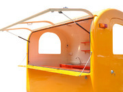 โครงสร้างร้านค้าทำจากไฟเบอร์กลาส 100% มีความแข็งแรงคงทนสูง น้ำหนักเบาสามารถเคลื่อนย้ายสะดวก หากต้องเปิดบริการในสถานที่กลางแจ้งด้านผนังหลังคาร้านได้ติดตั้งฉนวนกันความร้อนจากแสงแดด และหากเกิดอุบัติเหตุจากการถูกชนโครงสร้างที่ทำจากไฟเบอร์กลาสจะไม่เสียหายทั้งคันตัวร้านสามารถซ่อมแซมเฉพาะจุดได้ </p>