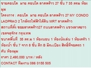 ไม่รับนายหน้า ขายคอนโดมาย คอนโด ลาดพร้าว 27 ชั้น 7 35 ตรม ห้องมุม