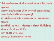 ไม่รับนายหน้า ให้เช่าคอนโด สาธร บริดจ์ ทาวเวอร์ 45 ตร.ม ชั้น 15 BTS กรุงธนบุรี