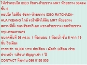 ไม่รับนายหน้า ให้เช่าคอนโด IDEO รัชดา-ห้วยขวาง MRT ห้วยขวาง 36ตรม ชั้น 6