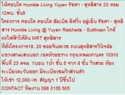 ให้คอนโด Humble Living Yuyen รัชดา - สุทธิสาร 23 ตรม 12พบ. ชั้น5