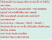 ไม่รับนายหน้า ให้เช่าคอนโด The Address อโศก 45 ตรม ชั้น 24 วิวตึกใบหยก 30พบ.