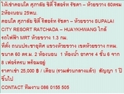 ให้เช่าคอนโด ศุภาลัย ซิตี้ รีสอร์ท รัชดา – ห้วยขวาง 60ตรม 2ห้องนอน 25พบ.