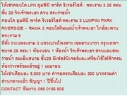 | สภาพ: | ลุมพินี พาร์ค ริเวอร์ไซด์-พระราม 3 | จังหวัด: | กรุงเทพมหานคร | ||