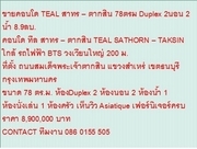 ไม่รับนายหน้า ขายคอนโด TEAL สาทร – ตากสิน 78ตรม Duplex 2นอน 2น้ำ 8.9ลบ.