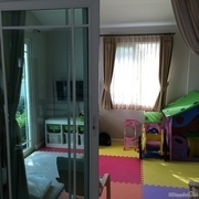 ชั้นล่างมีห้องนอนแขก-ห้องทำงาน(แต่ตอนนี้ทำเป็นห้องเล่นของเด็ก) มีครัวในบ้านเป็นเคาร์เตอร์ไว้เตรียมอาหาร