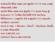 ไม่รับนายหน้า ขายคอนโด ซีณิธ เพลส แอท สุขุมวิท 71/1 31 ตรม บนสุด พร้อมเฟอร์ 2.65M