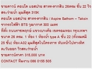 ไม่รับนายหน้า ขายดาวน์ คอนโด แอสปาย สาทร-ตากสิน 26ตรม ชั้น 22 วิวสระว่ายน้ำ มุมดีสุด 315K