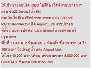 ไม่รับนายหน้า ให้เช่า ขายคอนโด IDEO ไอดีโอ เวิร์ฟ ราชปรารภ 71 ตรม ชั้น23 2นอน2น้ำ 8M