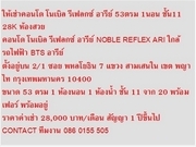 ไม่รับนายหน้า ให้เช่าคอนโด โนเบิล รีเฟลกซ์ อารีย์ 53ตรม 1นอน ชั้น11 28K ห้องสวย