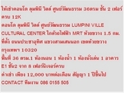คอนโด ลุมพินี วิลล์ ศูนย์วัฒนธรรม LUMPINI VILLE CULTURAL CENTER ใกล้รถไฟฟ้า MRT ห้วยขวาง 1.5 กม.