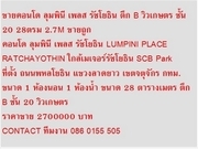 2.ขายคอนโด ลุมพินี เพลส รัชโยธิน ขนาด 1 ห้องนอน 1 ห้องน้ำ ขนาด 28 ตารางเมตร ตึก A ชั้น 20 วิวเกษตร ราคาขาย 2700000 บาท