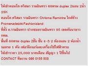 ให้เช่าคอนโด คริสมา รามอินทรา 60ตรม duplex 2นอน 2น้ำ 25K