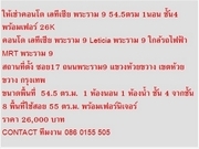 ให้เช่าคอนโด เลทีเซีย พระราม 9 54.5ตรม 1นอน ชั้น4 พร้อมเฟอร์ 26K
