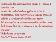 ให้เช่าคอนโด โว๊ค เรสซิเด้นท์เชียล สุขุมวิท 31 50ตรม 1นอน ชั้น5 35K