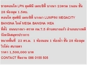ขายคอนโด LPN ลุมพินี เมกะซิตี้ บางนา 23ตรม 1นอน ชั้น28 ห้องมุม 1.5ลบ.