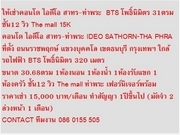 | ยี่ห้อ: | IDEO SATHORN-THA PHRA | รุ่น: | IDEO SATHORN-THA PHRA | ||