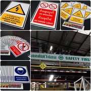 ป้ายสัญลักษณ์เพื่อความปลอดภัยประเภทต่าง ๆ เช่น อุปกรณ์ด้านการจราจร, ป้ายเตือนเพื่อความปลอดภัย, ป้ายเครื่องหมายสภาวะความปลอดภัย, ป้ายเครื่องหมายเตือน WARNING SIGNS, ป้ายเครื่องหมายบังคับ, ป้ายเครื่องหมายห้ามและป้องกันอัคคีภัย, ป้ายความปลอดภัย, ป้ายเรืองแสง สะท้อนแสง, ป้ายตั้งพื้น, ป้ายเครื่องหมายเสริม, ป้ายสถิติความปลอดภัย, ป้ายเครื่องหมายบังคับจราจร, ป้ายเครื่องหมายเตือน มีขนาดต่าง ๆ เช่น 10x45cm., 20x30cm., 15x30 cm., 20x45 cm. , 30x45 cm.,15x40 cm., 37.5x45 cm., 30x60 cm., 40x80 cm., 30x240 cm.,