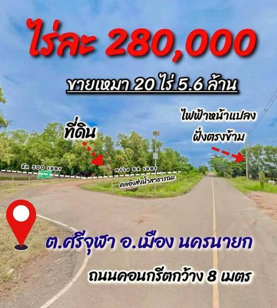 ✅ถูกมาก #ที่ดินนครนายก 20 ไร่ ใกล้ อบต.ศรีจุฬา #เมืองนครนายก