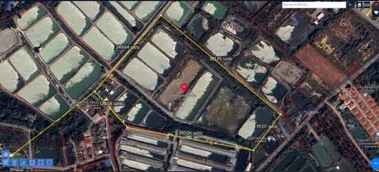 - ที่ดินเนื้อที่ 48-2-22 ไร่ หน้ากว้าง 250 เมตร ลึก 380 เมตร