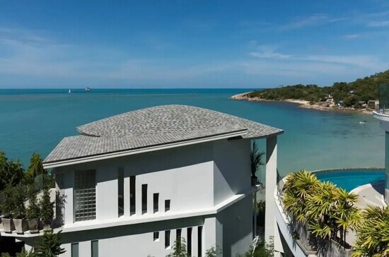 วิลล่าริมทะเลที่ได้รับการออกแบบร่วมสมัย ตั้งอยู่บนคาบสมุทรปลายแหลม มองเห็นอ่าวท้องสนที่ปลายสุดด้านเหนือของเกาะสมุย