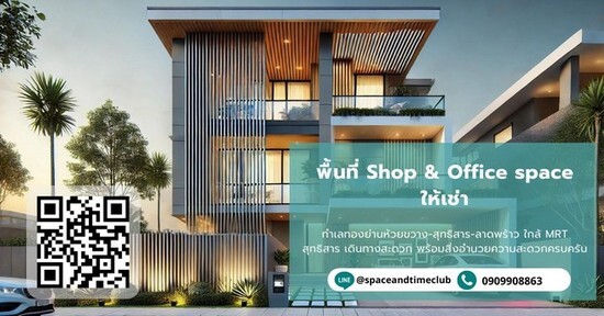 ให้เช่าพื้นที่ทำ ร้านกาแฟ Cafe,Office ในทำเลทองย่าน “ห้วยขวาง-สุทธิสาร-ลาดพร้าว”