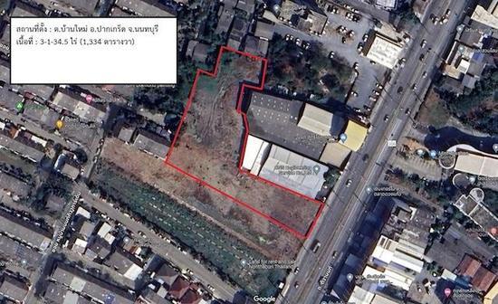 ที่ดิน ขายยกแปลง หรือ แบ่งขาย 3-1-34.5ไร่(1,334ตารางวา) ติดถนนติวานนท์-ปากเกร็ด ทำเลดี