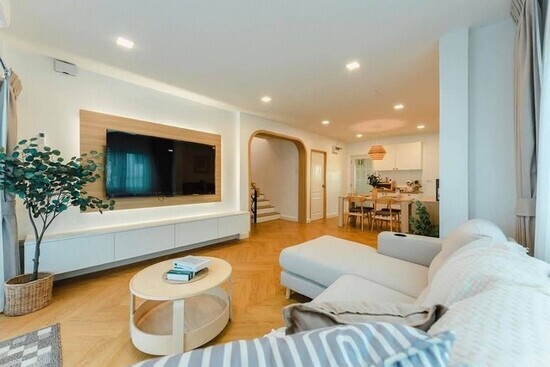 - ตกแต่งพร้อมอยู่ แถมเฟอร์นิเจอร์พร้อมของตกแต่ง, แถม TV 65 นิ้ว, Digital door lock, เตาเซรามิคและ Hood ดูดควัน, แอร์ใหม่ 3 เครื่อง, ชุดผ้าม่านทั้งหลัง
