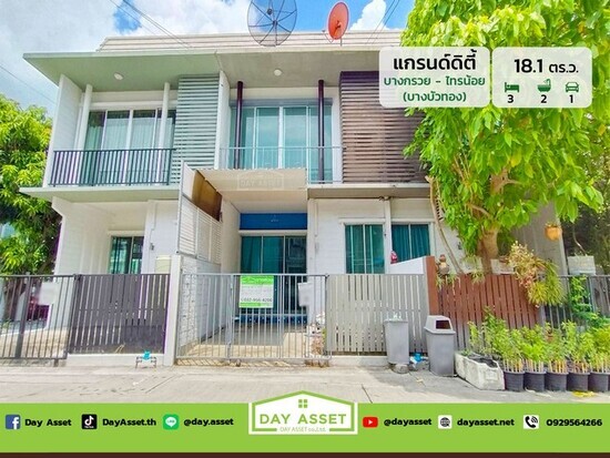 ขายทาวน์เฮ้าส์ 2 ชั้น หมู่บ้าน แกรนด์ดิตี้ บางกรวย-ไทรน้อย (ซอยบ้านเอื้ออาทร) เนื้อที่ 18.1 ตร.ว. ขายเพียง 1,990,000 ล้านบาท