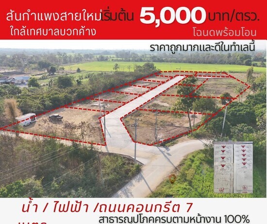 โฉนดพร้อมโอน/เทคอนกรีต 7 เมตร/ติดตั่งไฟฟ้าขยายเขต/ระบบน้ำ