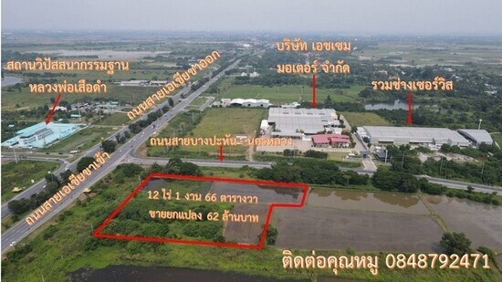 ขายด่วนที่ทำเลดี อ.บางปะหัน จ.พระนครศรีอยุธยา ติดถนน 2 ด้าน แปลงหัวมุม 12 ไร่ 1 งาน 66 ตารางวา