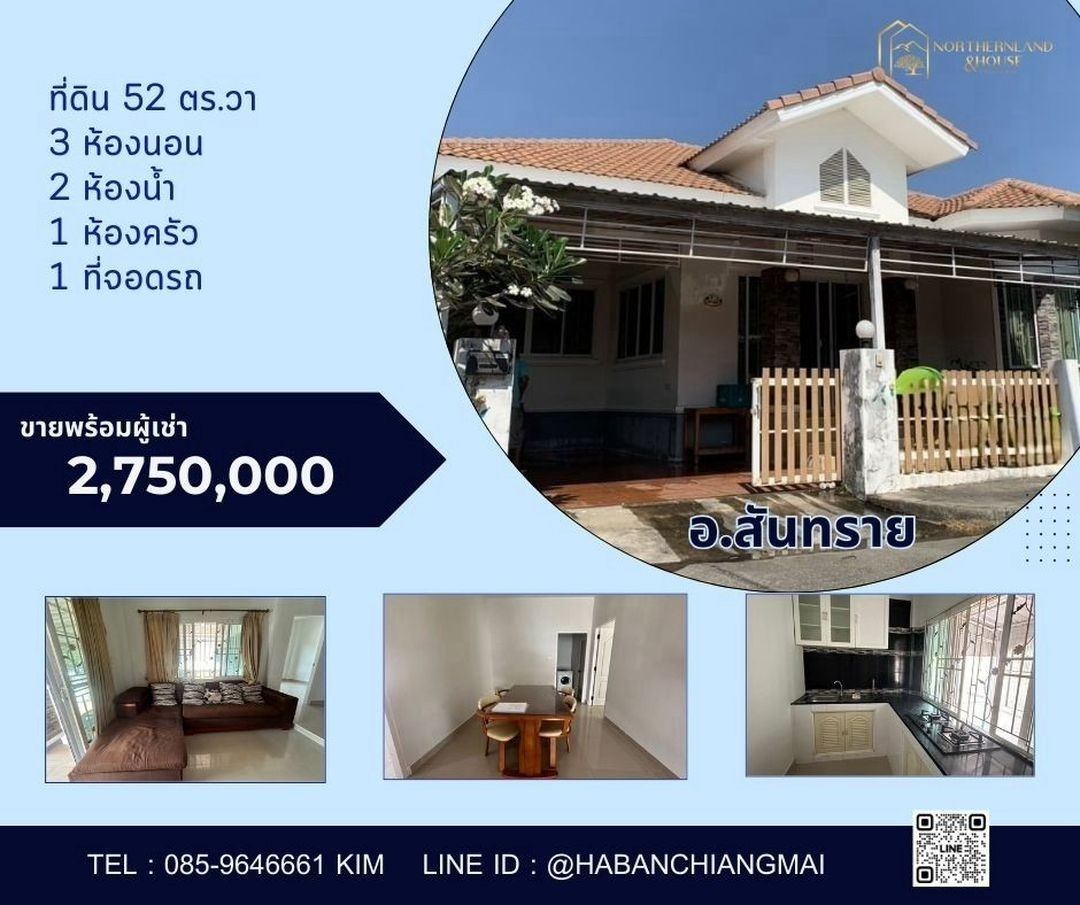 เจ้าของขายเอง #รับนายหน้า #ขายพร้อมผู้เช่า 2.75 ล้าน ม.รุ่งเรือง สันทราย บ้านสวย ทำเลดี หนองจ๊อม รับรายได้เดือนละ11,000 บาท (สัญญา 1 ปี)