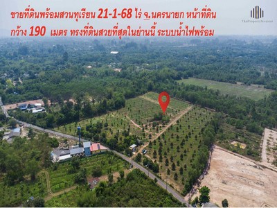 ขายที่ดินพร้อมสวนทุเรียนแปลงใหญ่ 21-1-68 ไร่ จังหวัด นครนายก ทรงที่ดินสวยหน้ากว้าง ระบบน้ำไฟสายสื่อสารพร้อม เหมาะลงทุนทำสวนสร้างผลกำไรได้อย่างงาม !!