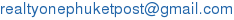Head office : Realty One Phuket : 126/26 หมู่ 5 ถ.ประชาอุทิศ ต.รัษฎา อ.เมือง จ.ภูเก็ต 83000