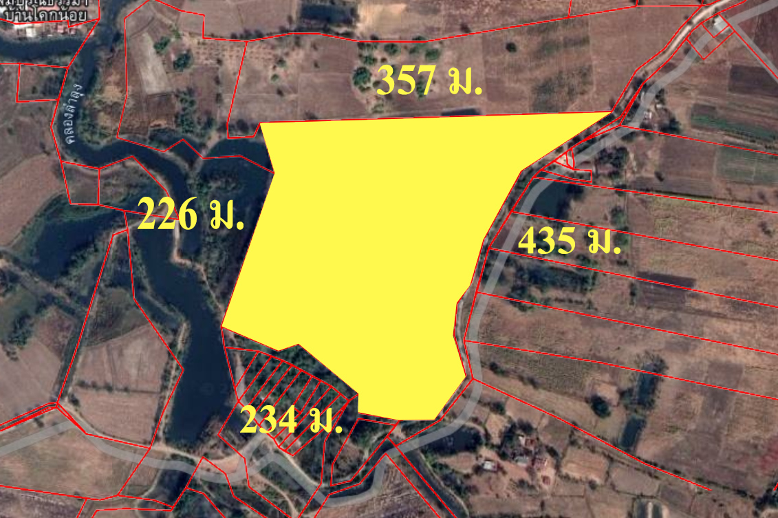 - หน้ากว้างติดถนน 435 เมตร ลึก 234 เมตร