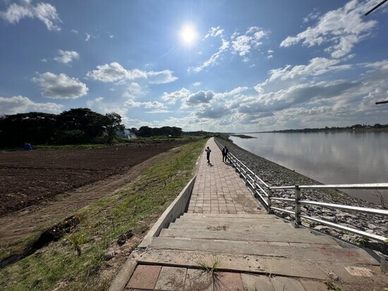 ที่ดินติดพนังกั้นน้ำโขงแล้ว กำลังจะทำถนนคอนกรีตติดริมโขง สามารถใช้เป็นทางเข้า-ออกที่ดิน ได้อีกทางในอนาคต