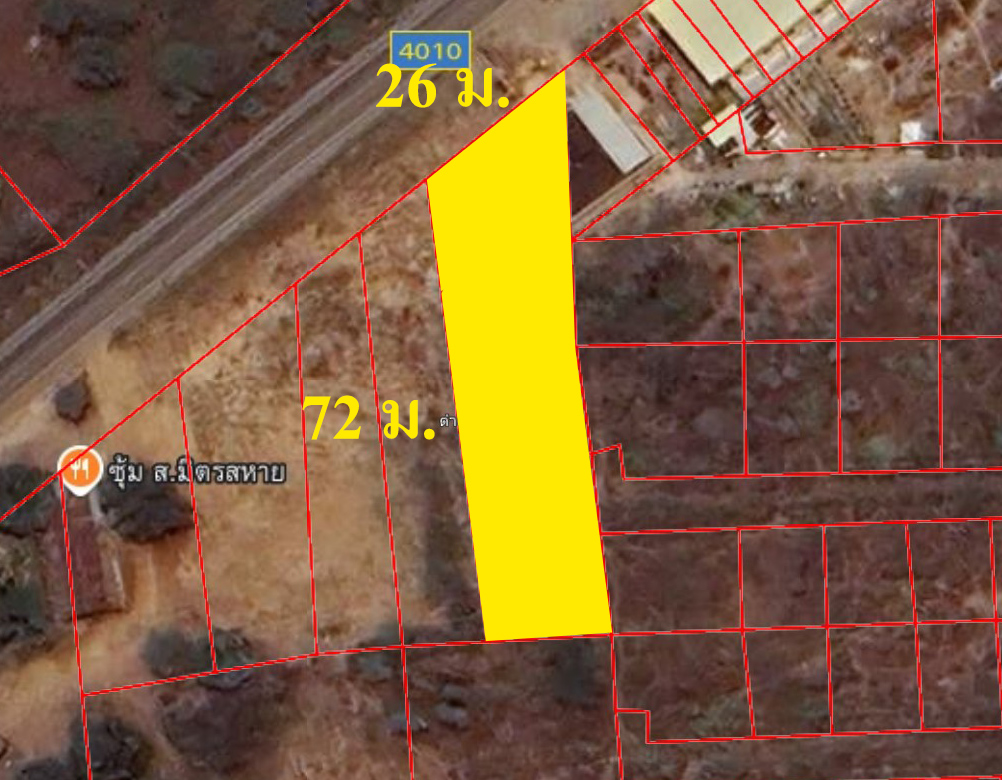 - เนื้อที่ 1 ไร่ 15 ตรว. หน้ากว้างติดถนน 26 ม. ลึก 72 ม.