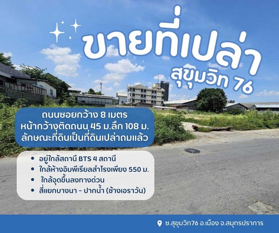 ขายที่ดินเปล่า..สุขุมวิท 76 ราคาว้าวถูกสุดในย่านนี้ ผังเมืองสีแดงซ.สุขุมวิท76 อ.เมืองจ.สมุทรปราการ