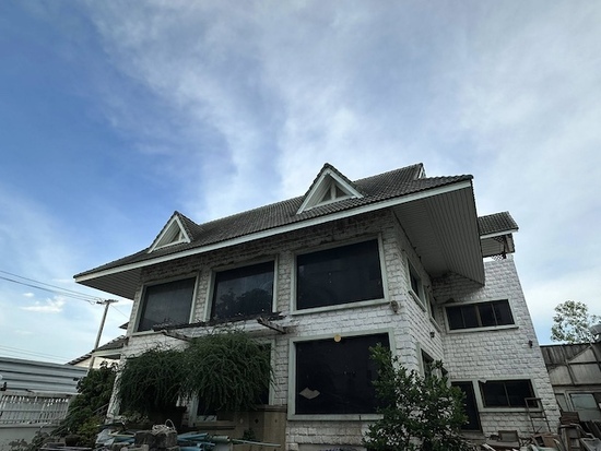 Land with house and warehouse for sale in Onnut 66/1 (next to Onnut Post Office). Total land size is 217 sq. wah with full facilities including 3 floors + basement, roof terrace with pavilion, and a separate warehouse building. Yellow zoning area – suitable for residential or office use.