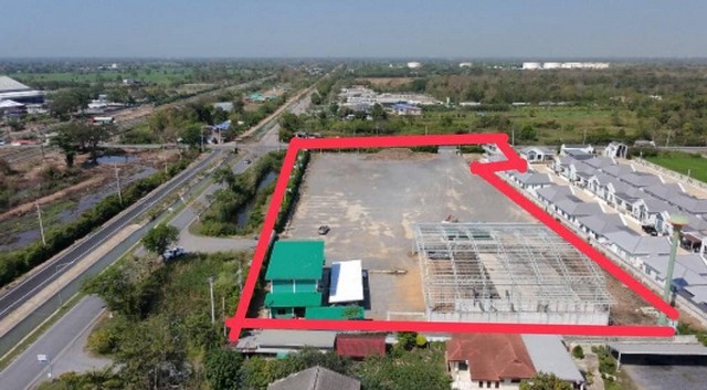 出售位于泰国沙拉武里府 Sao Hai 区的黄金地段转角地,临街双面大路,面积近 9 莱!