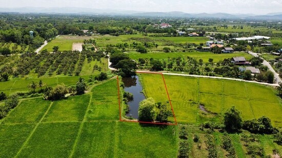 มีหนองน้ำในแปลงที่ดิน พร้อมวิวทุ่งนา อยู่ในแหล่งชุมชน น้ำไฟพร้อม ใกล้รีสอร์ท คาเฟ่ ชื่อดัง