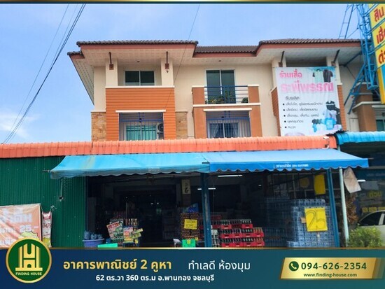 ขายอาคารพาณิชย์ 2 คูหา 3ชั้น พร้อมกิจการ ทำเลดี หลังมุม 62 ตารางวา อ.พานทอง จ.ชลบุรี