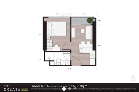 ขนาดห้อง 25.30 ตร.ม. ตึก A ชั้น 2