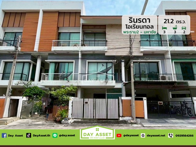 ขายทาวน์โฮม 3 ชั้น หมู่บ้านรินรดา โอเรียนทอล ถนนสหกรณ์ สมุทรสาคร : Rinrada Oriental Village Sahakorn Road, Samut Sakhon ทำเลดี ใกล้แหล่งอำนวยความสะดวกครบครัน เนื้อที่ 21.2 ตร.ว. ขายเพียง 2,390,000 ล้านบาท