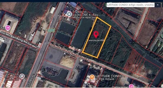 ขายที่ดินซอยบางนาการ์เด้น 4 เพียง 90 เมตรจากซอยเอแบค เหมาะสร้างออฟฟิศ, อพาร์ทเม้นท์, โกดัง ฯลฯ
