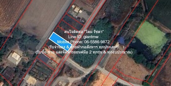 1. ที่ดินรูปทรงสี่เหลี่ยมผืนผ้าติดถนนเป็นโฉนด (น.ส.4 จ) ที่มีเนื้อที่ 0-1-0 ไร่ (100 ตร.ว.) ติดถนนคอนกรีตกว้าง 5 ม.